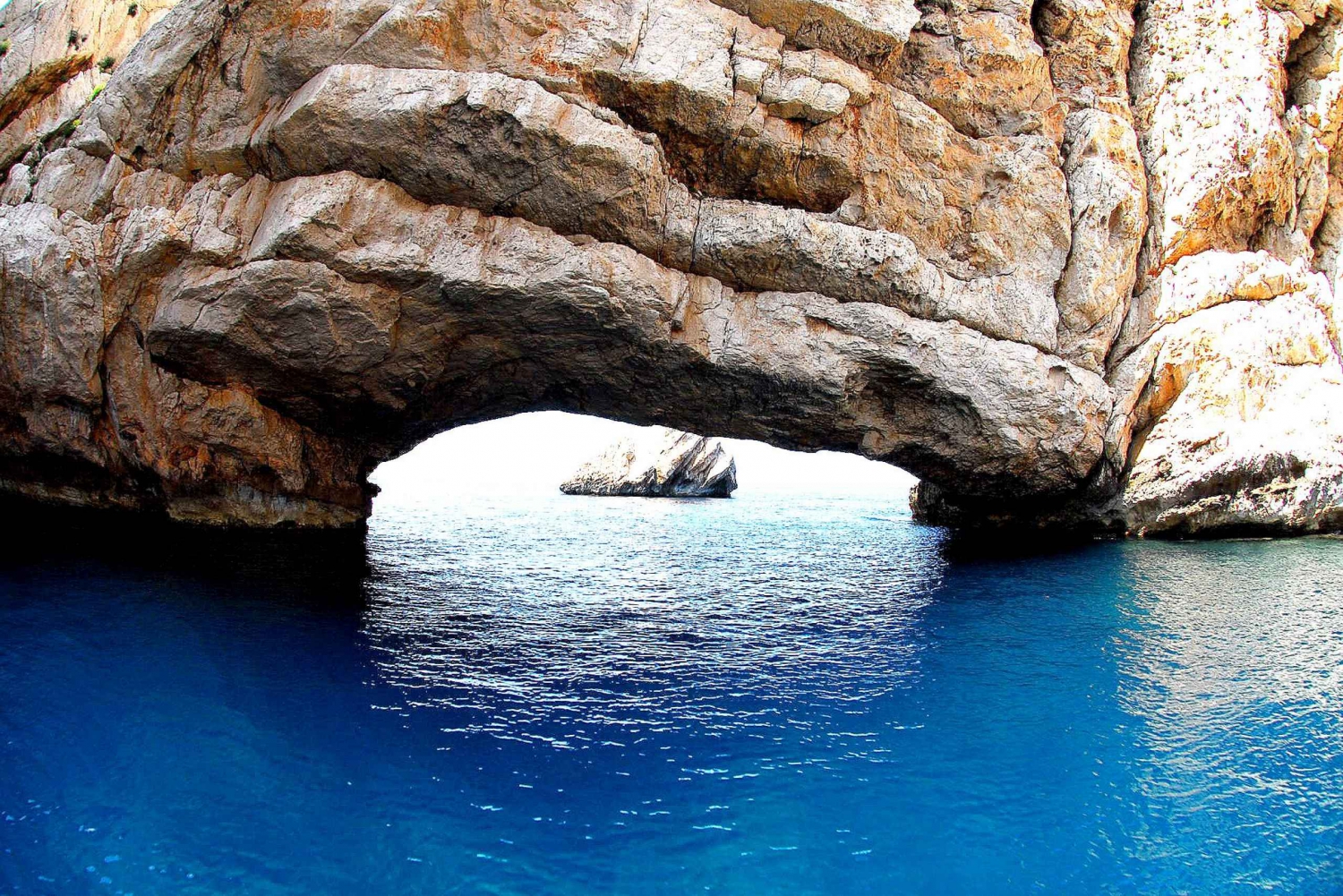 Mens båden glider gennem det krystalklare vand, kan du nyde den betagende udsigt over den forrevne kystlinje og de uberørte bugter og strande.