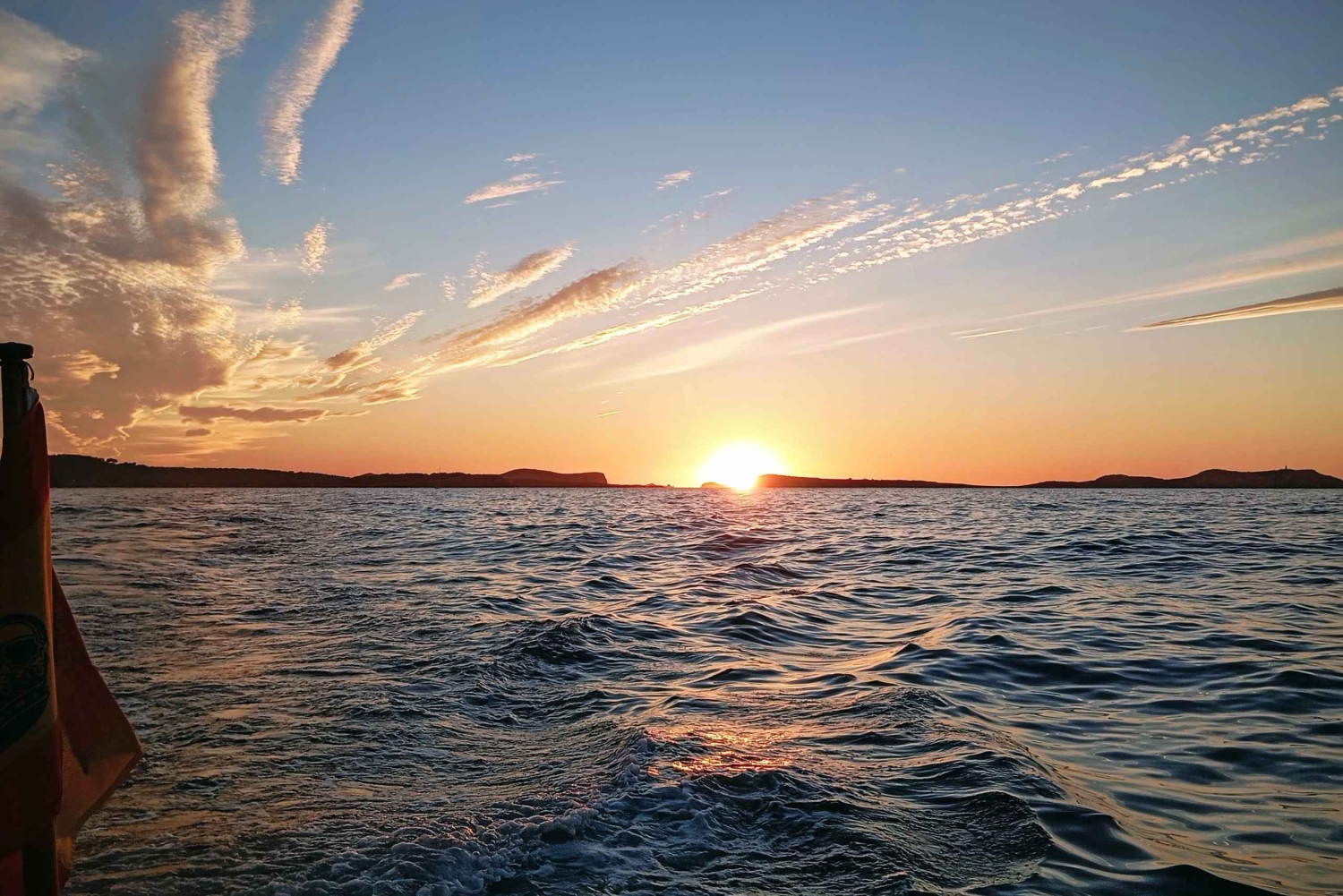 Hvis havforholdene tillader det, sejler snorkelbåden også ind i Ibizas største havgrotte for at vise dig livet i havet. Derefter kan vi beundre solnedgangen fra vores båd, inden vi ankommer til havnen.
