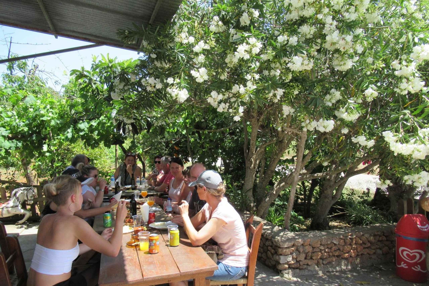 SPECIELLE STEDER Ibiza er en ø fuld af mystik og øgenavne. En festø, hippieø, øen for de rige og den hvide ø. 100% Ibiza Island Tour viser denne smukke øs mangfoldighed. Turen går gennem farverig natur og forbi maleriske bugter. Oplev, hvor vigtig saltudvinding har været med øens fascinerende historie. Oplev danskulturen på øens allerførste klub. SMUKKE HISTORIER, MAGI OG MERE En erfaren turguide ledsager de små grupper (ca. 22 personer) på deres eget sprog på en uforglemmelig tur rundt på øen. Mærk magien på den mystiske ø Es Vedrà med sin storslåede udsigt. Tag de smukkeste feriebilleder i farverige bugter. De ægte Ibicencos viser deres gæstfrihed ved en picnic på landet. Der vil også blive besøgt et ægte hippiemarked. Denne hyggelige dag byder på en tur til de smukkeste skjulte steder på øen i en hyggelig og afslappet atmosfære.Includes