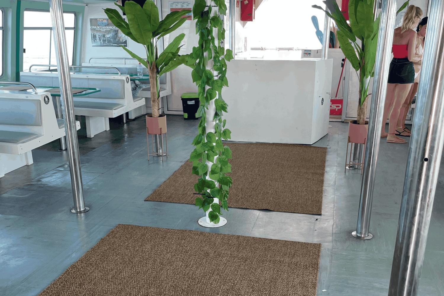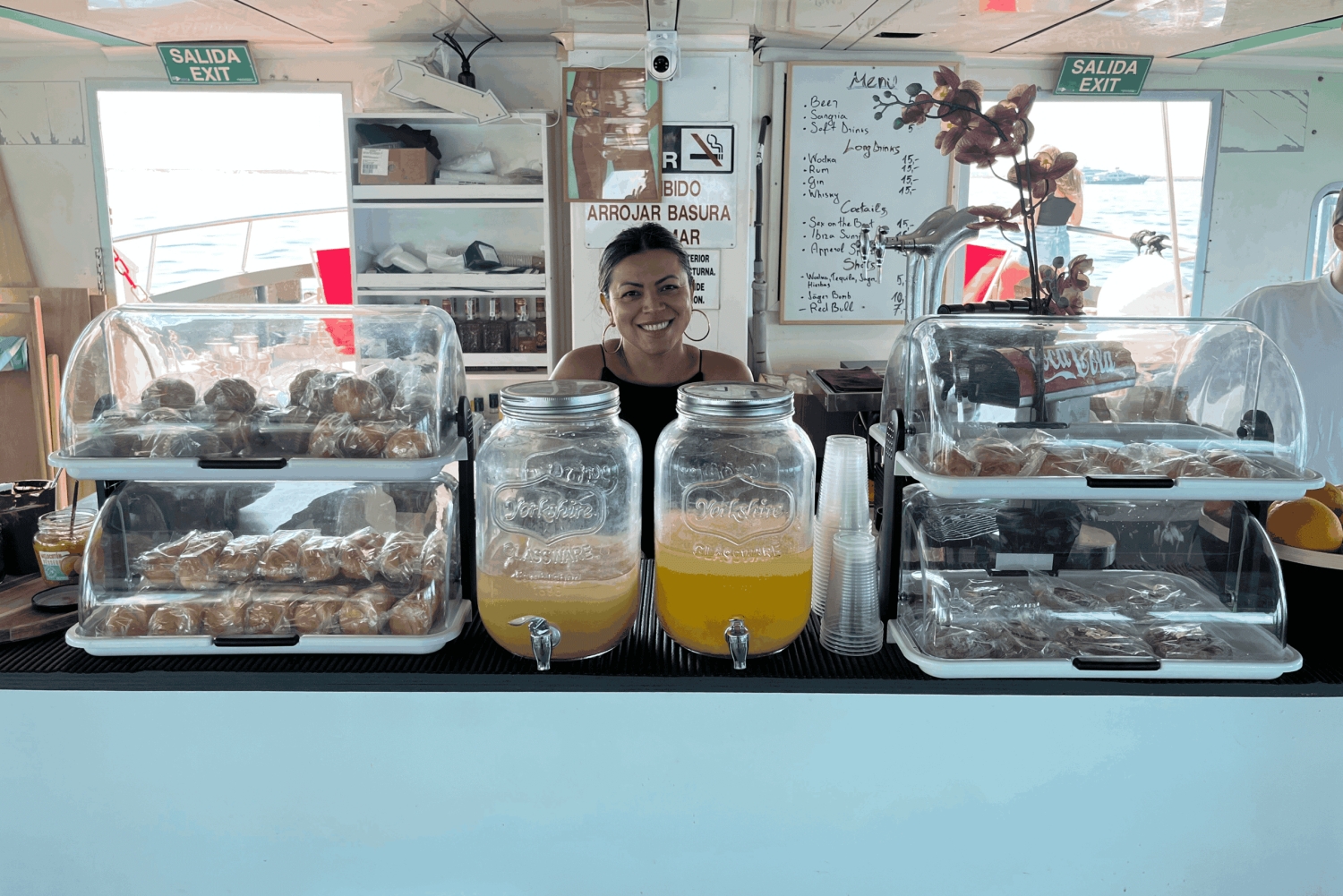 - Feel the sun on your skin as you relax on the deck of a spacious boat