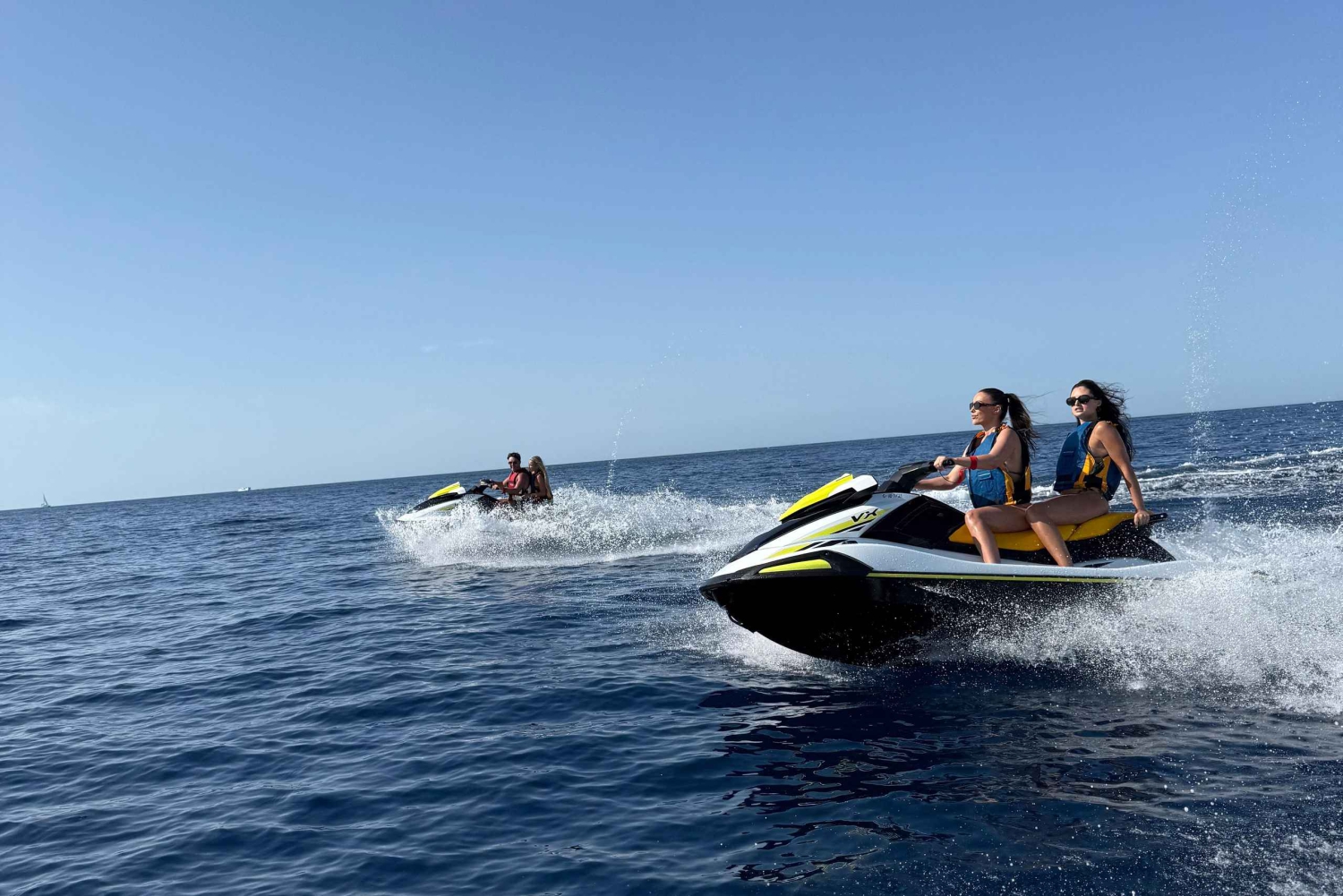 - Alaikäraja: Osallistujien on oltava vähintään 18-vuotiaita ja heillä on oltava voimassa oleva ajokortti. Turvallisuusohjeet: Ennen aktiviteetin alkua pidetään pakollinen turvallisuusohjeistus. Terveydelliset rajoitukset: Aktiviteettia ei suositella raskaana oleville naisille eikä henkilöille, joilla on sydän-, selkä- tai niskavaivoja. Suositeltava vaatetus: Käytä mukavaa uimapukua ja ota mukaan pyyhe. Suosittelemme käyttämään vedenkestävää aurinkovoidetta. Sisältää: Jetski-vuokra 1 tunti, turvavarusteet ja polttoaine. Ei sisällä: Valokuvia tai videoita (saatavilla erikseen ostettavina), ruokaa tai juomia. Sääpolitiikka: Aktiviteetti voidaan siirtää tai perua huonon sään tai meren olosuhteiden vuoksi. Tällöin tarjotaan täysi hyvitys tai uuden päivämäärän varaus. Peruutusehdot: Ilmainen peruutusoikeus 24 tuntia ennen varattua aikaa. Myöhäisistä peruutuksista tai saapumatta jättämisestä voidaan veloittaa maksu. Vastuuvapauslauseke: