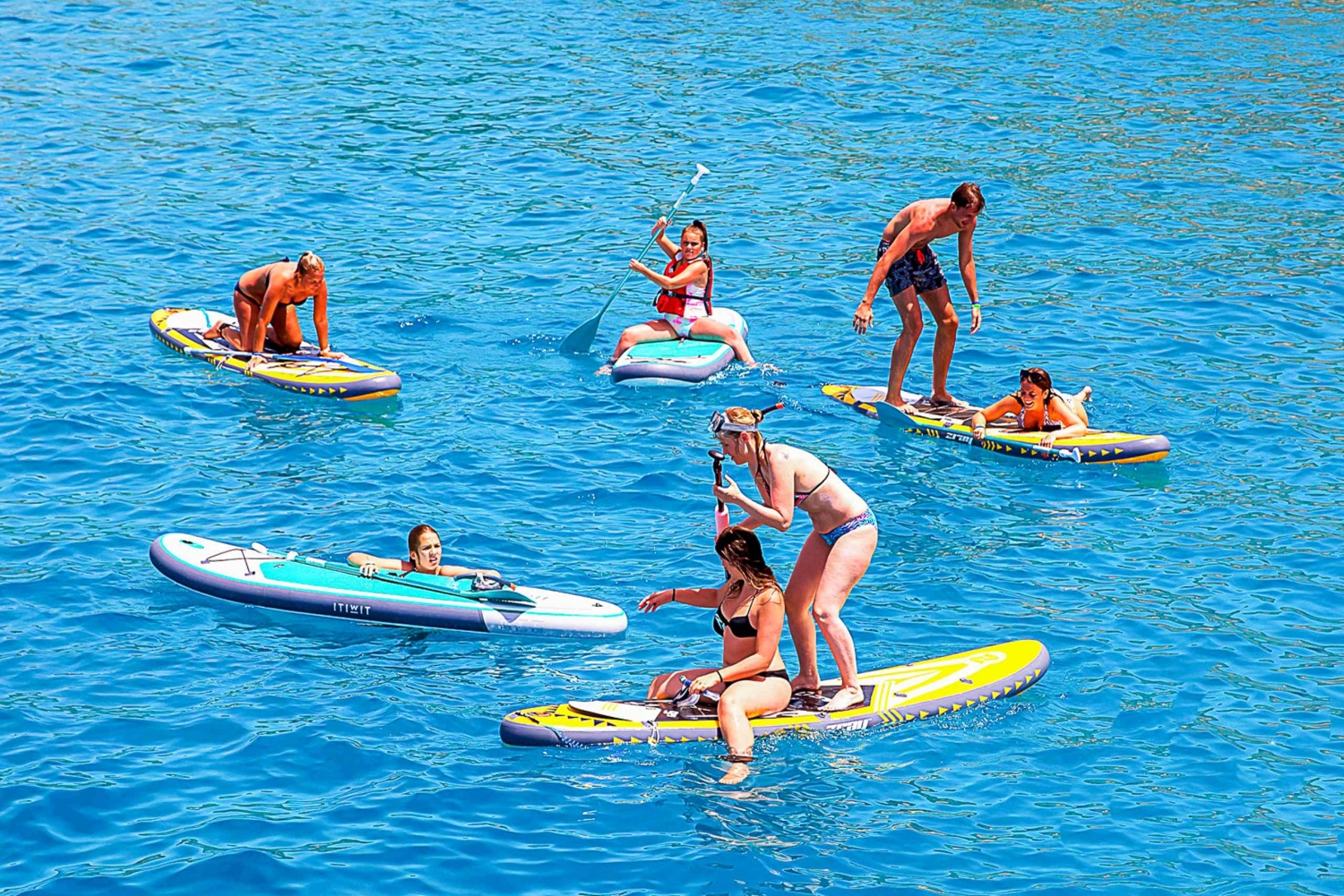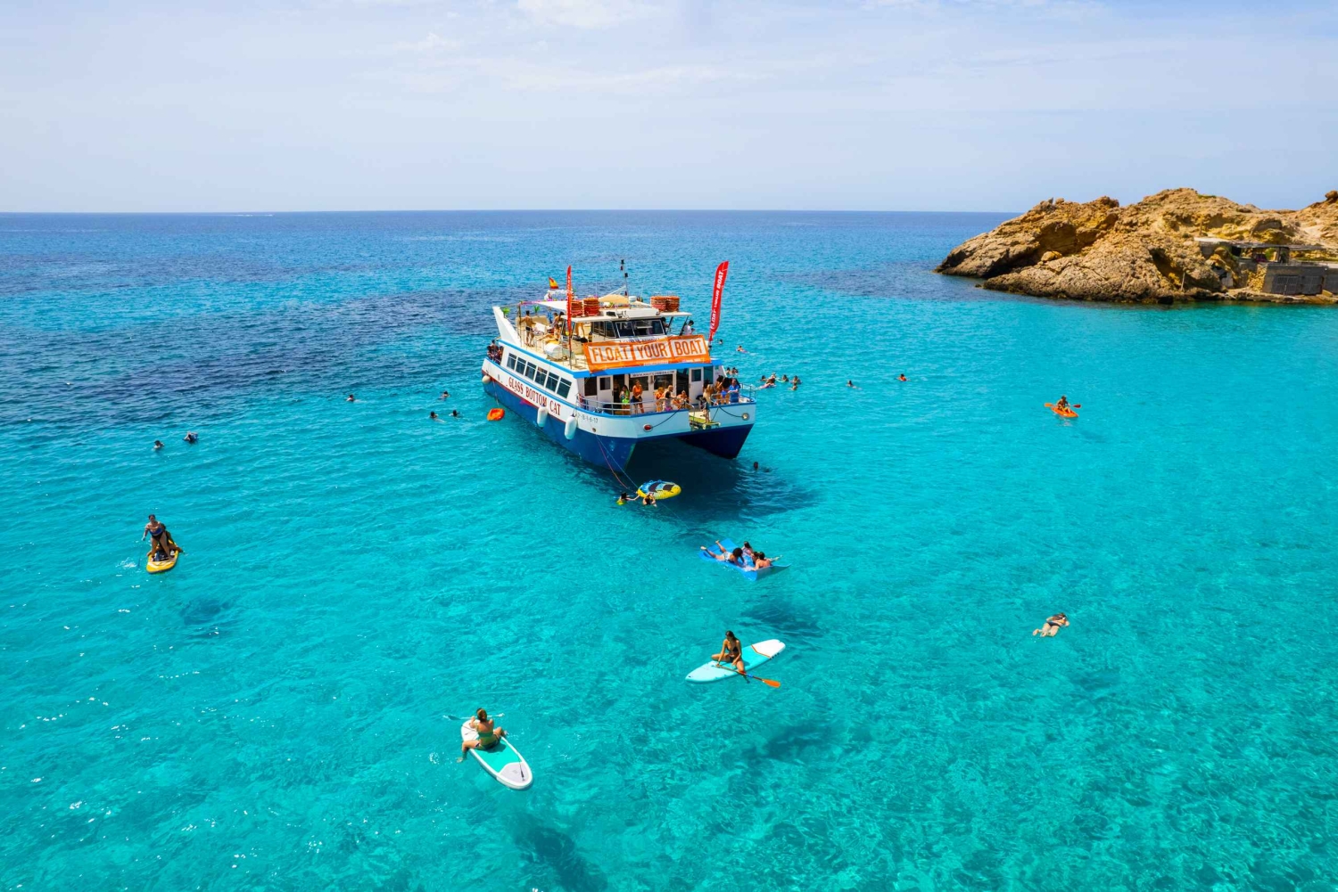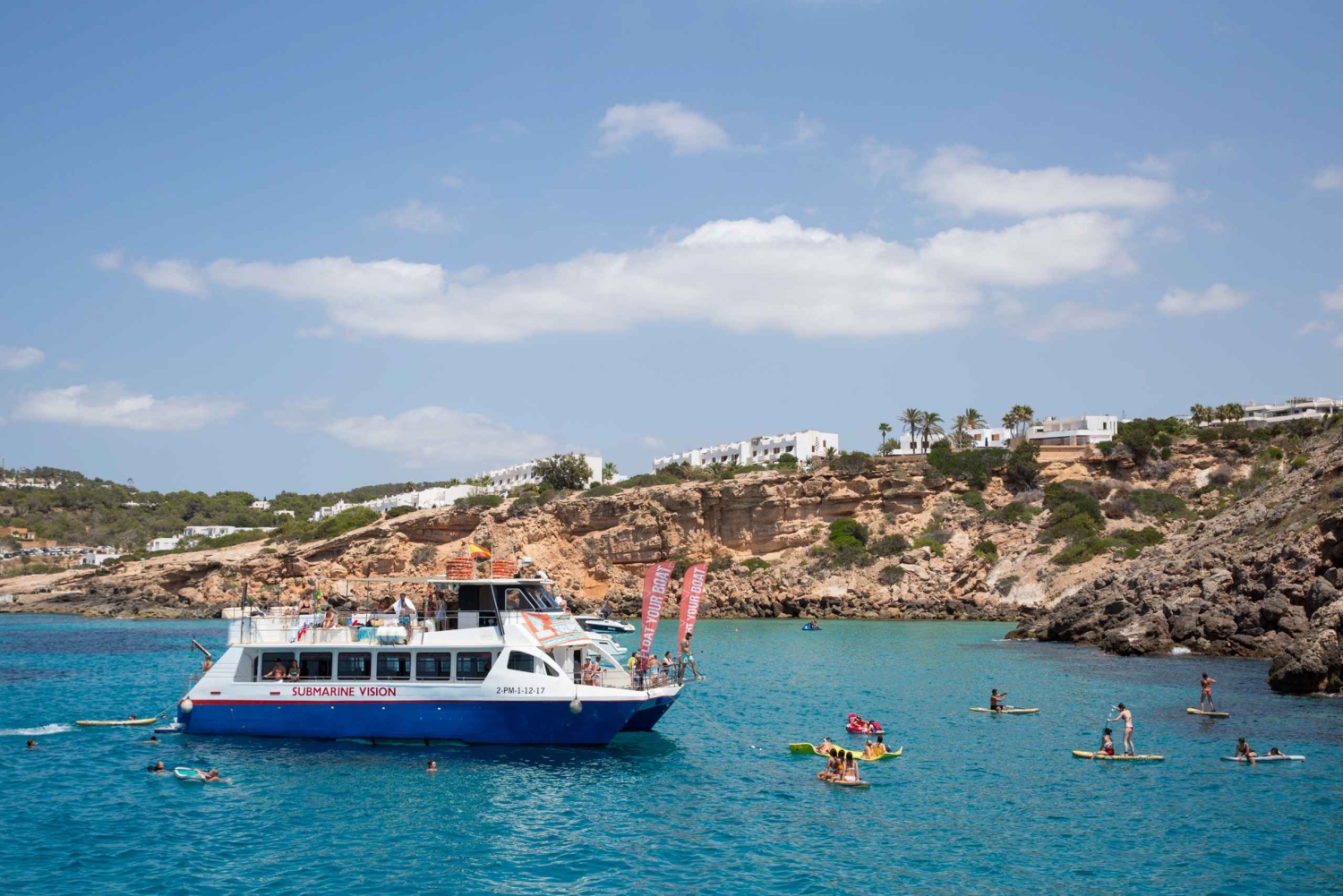 Visitez les plages de carte postale d'Ibiza, lors d'une croisière tout compris qui accoste à Cala Bassa et Cala Conta. Nagez, faites du paddleboard et du snorkeling dans une baie isolée et profitez des boissons, de la nourriture et de la musique à bord.