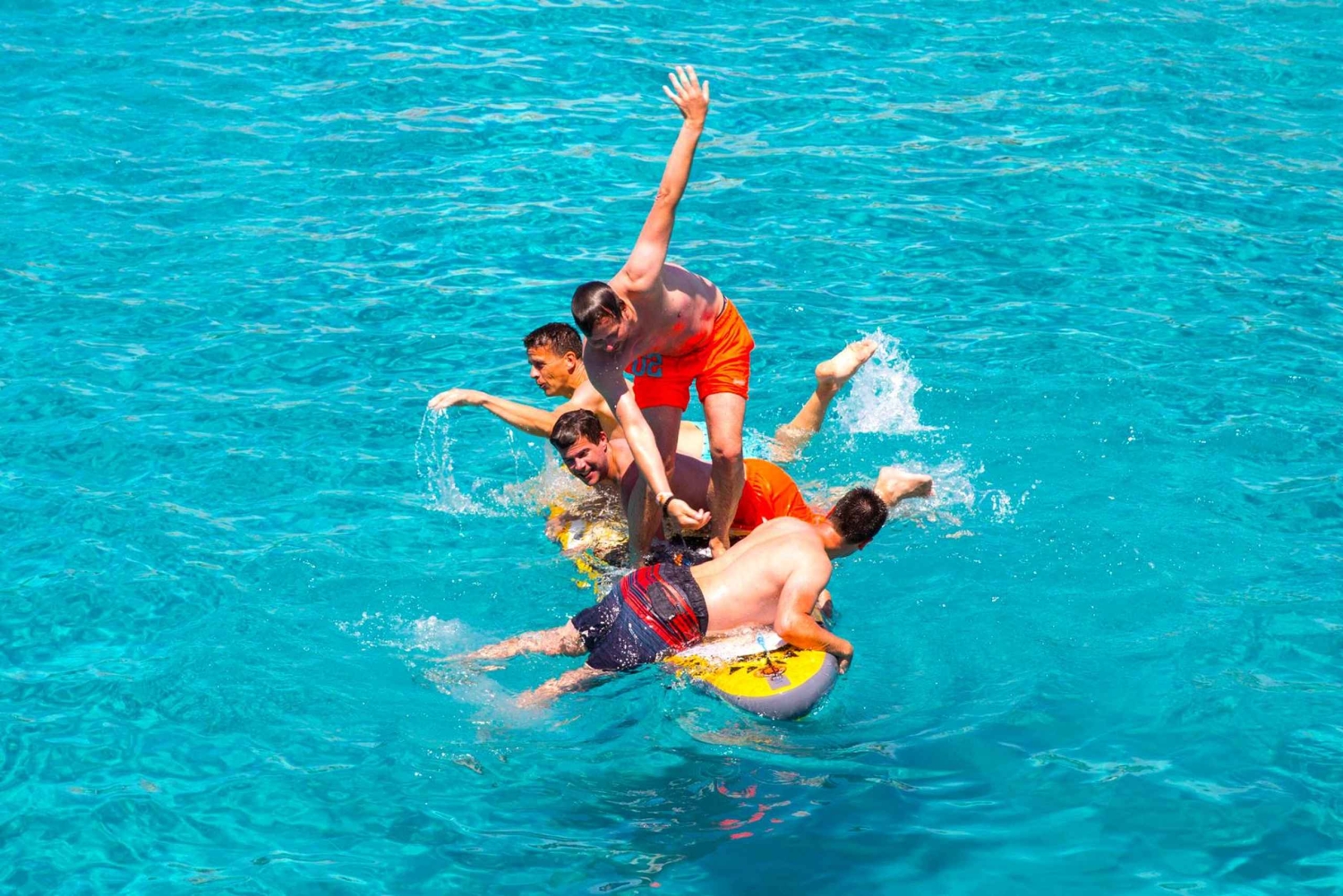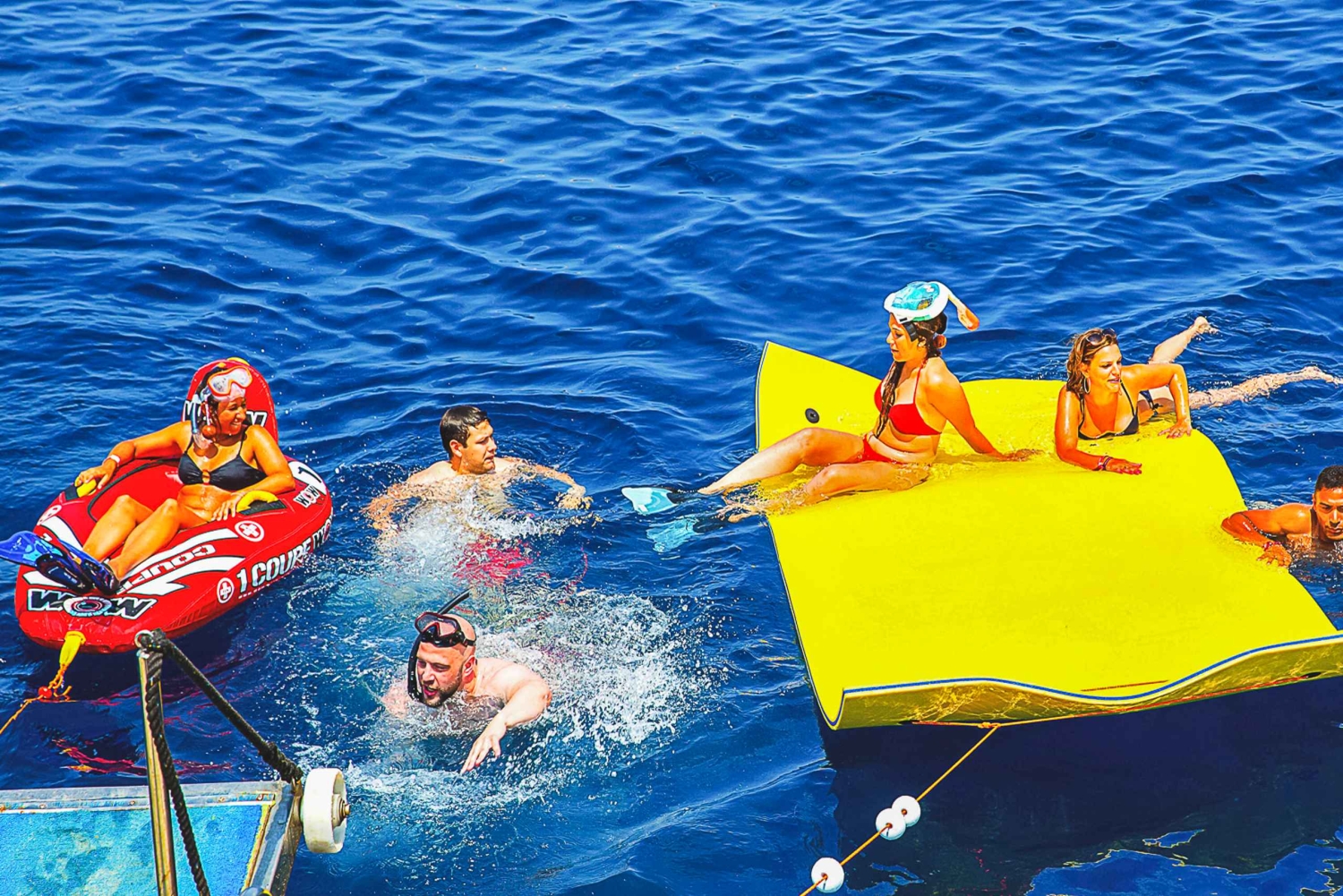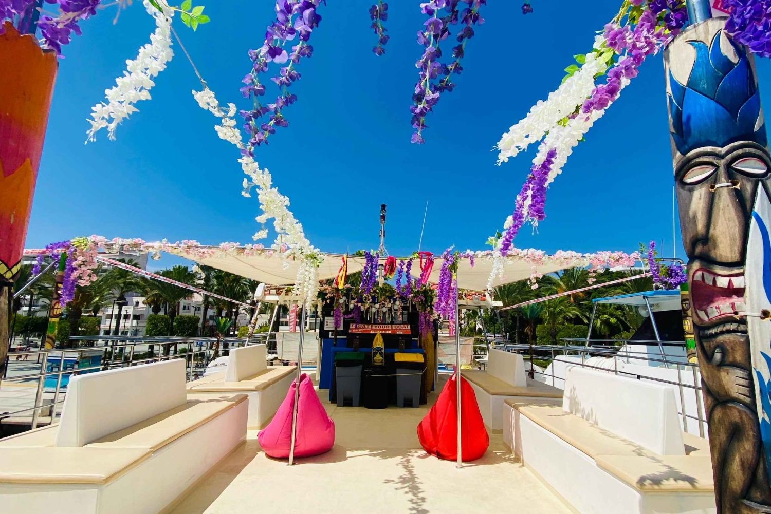 Profitez de 4 boissons alcoolisées et de boissons non alcoolisées à volonté lors de la croisière au coucher du soleil. Lors de la croisière de jour, toutes les boissons sont illimitées (bière, sangria, cava, boissons non alcoolisées et eau). Grignotez une variété d'en-cas tels que tortilla de pommes de terre, salade de pâtes, rouleau de viande, pain pizza local, alioli, pâtisseries, fruits frais et sucreries pendant que vous vous détendez et admirez les vues panoramiques. Retour au bateau pour voyager tranquillement jusqu'à une baie isolée où vous pratiquerez le paddle board, la plongée avec tuba, le bodyboard, le plongeoir ou vous détendrez sur nos beignets et notre tapis flottant. Vos guides vous assisteront tout au long du voyage, s'assurant que vous vivez une expérience sûre et amusante. Enfin, mettez le cap sur le retour et détendez-vous en naviguant jusqu'au port en écoutant de la bonne musique. Si vous avez choisi l'option de l'après-midi, vous pourrez admirer les vues d'un magnifique coucher de soleil pour terminer la journée devant le Mambo.