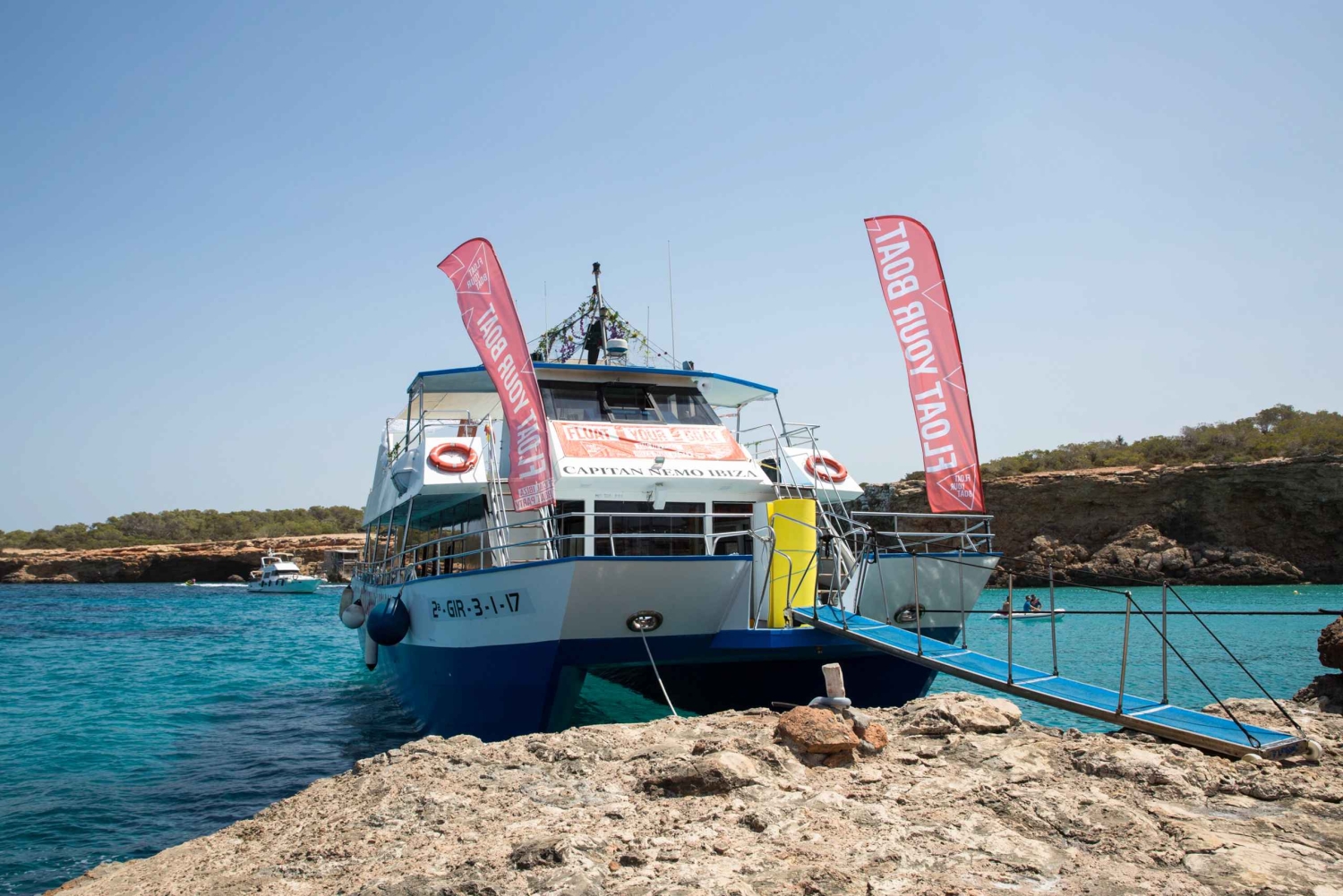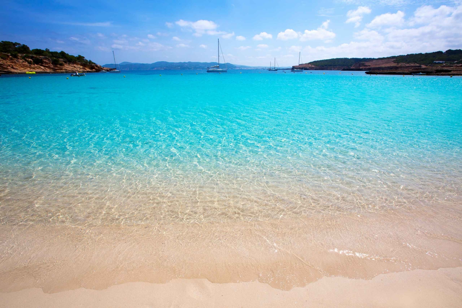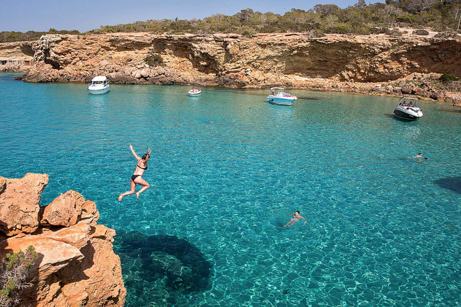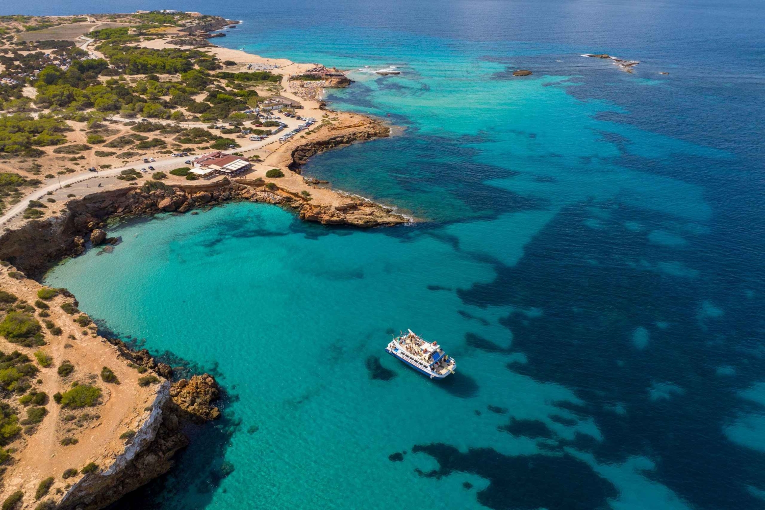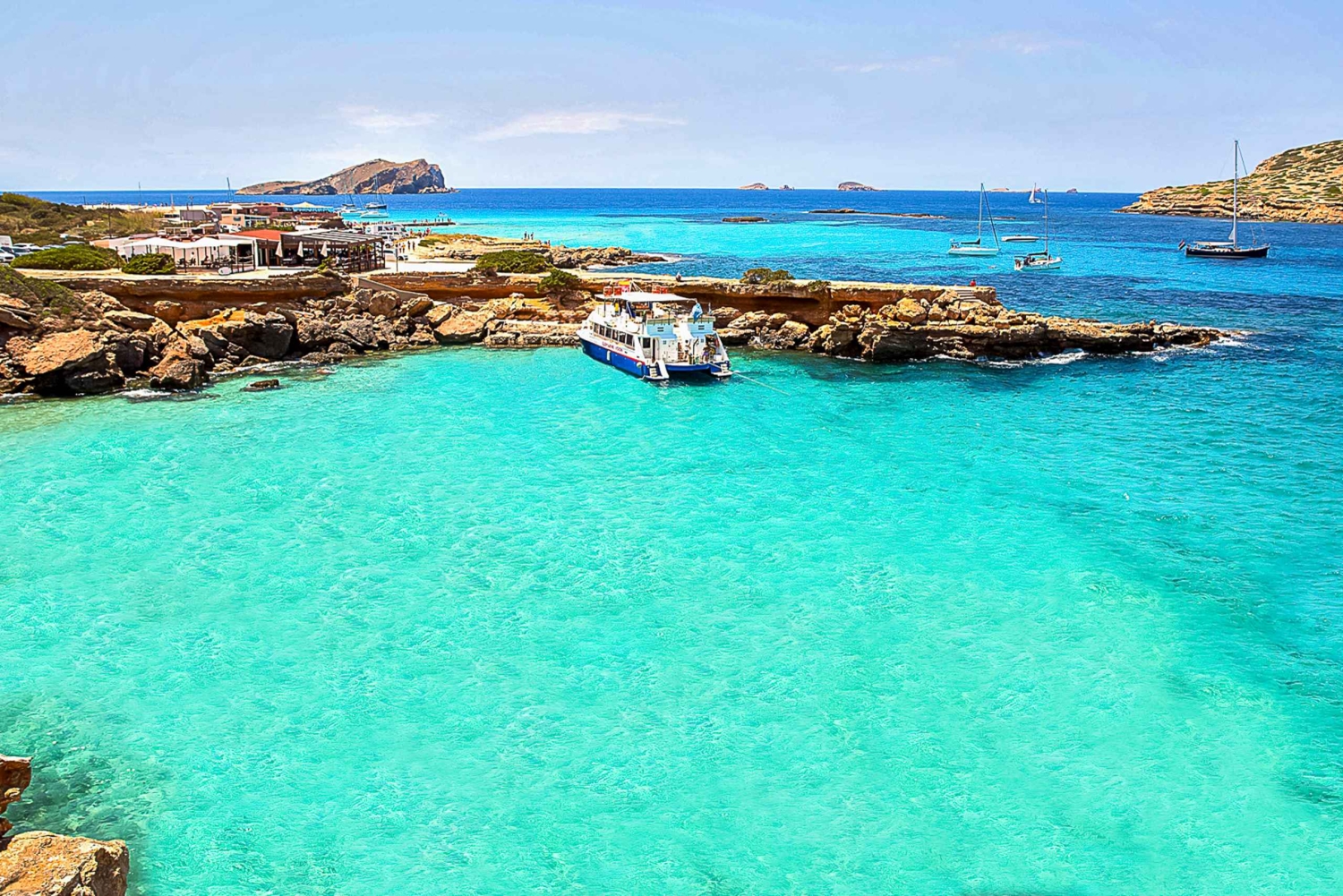 • Accostez à Cala Bassa et Cala Comte pour explorer et vous baigner dans des eaux bleues et limpides.
