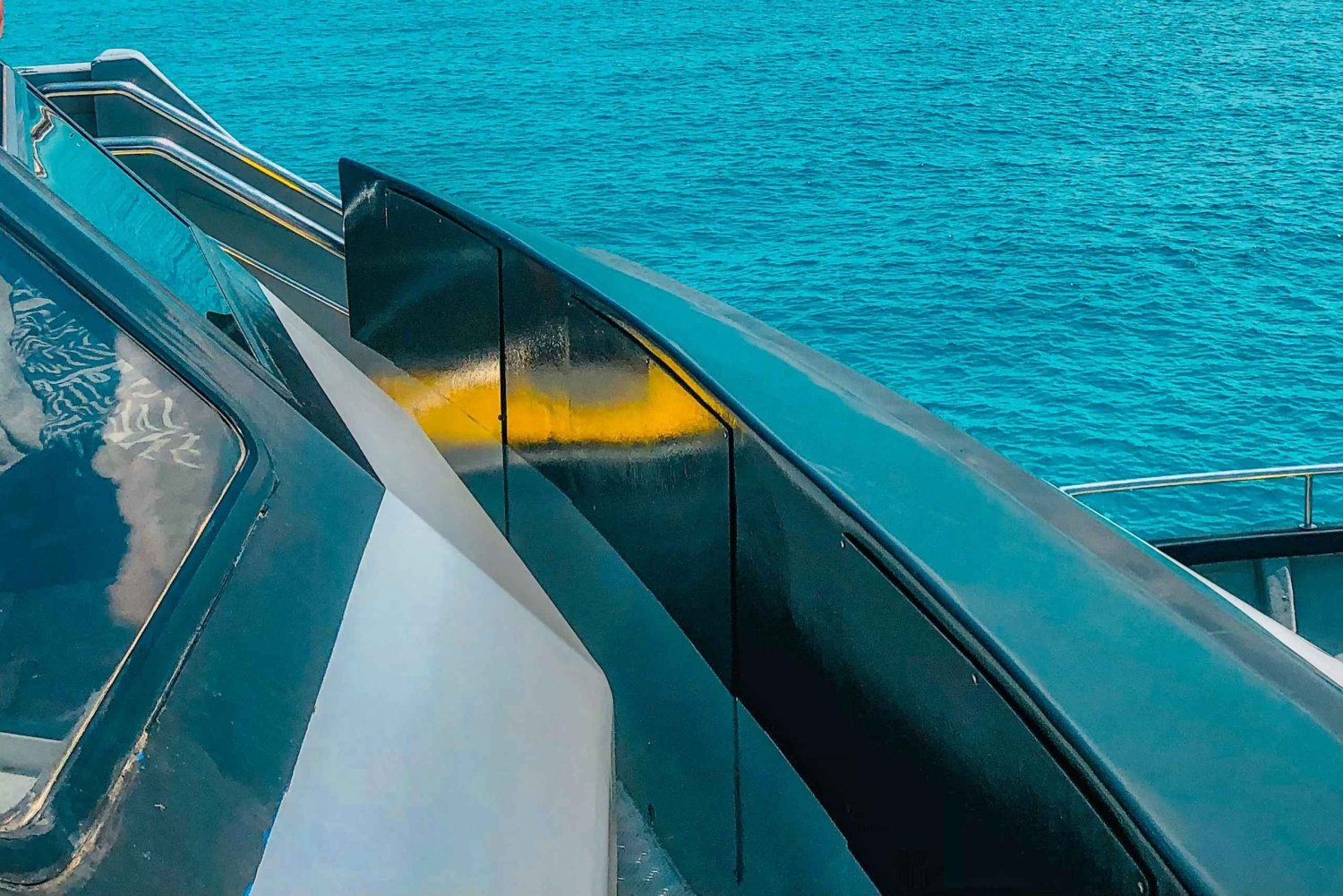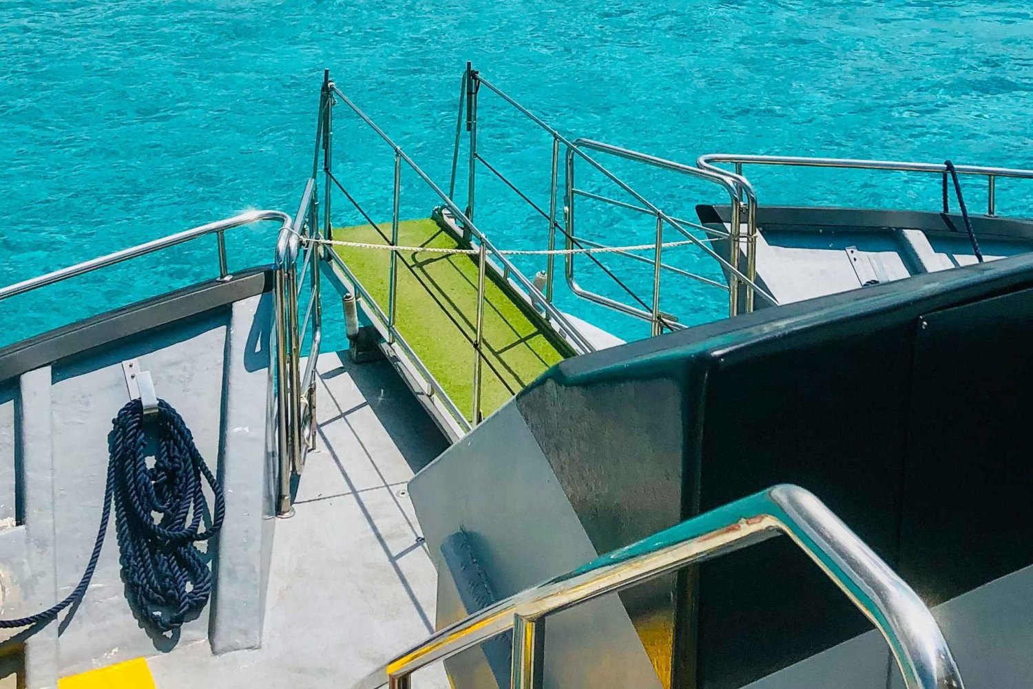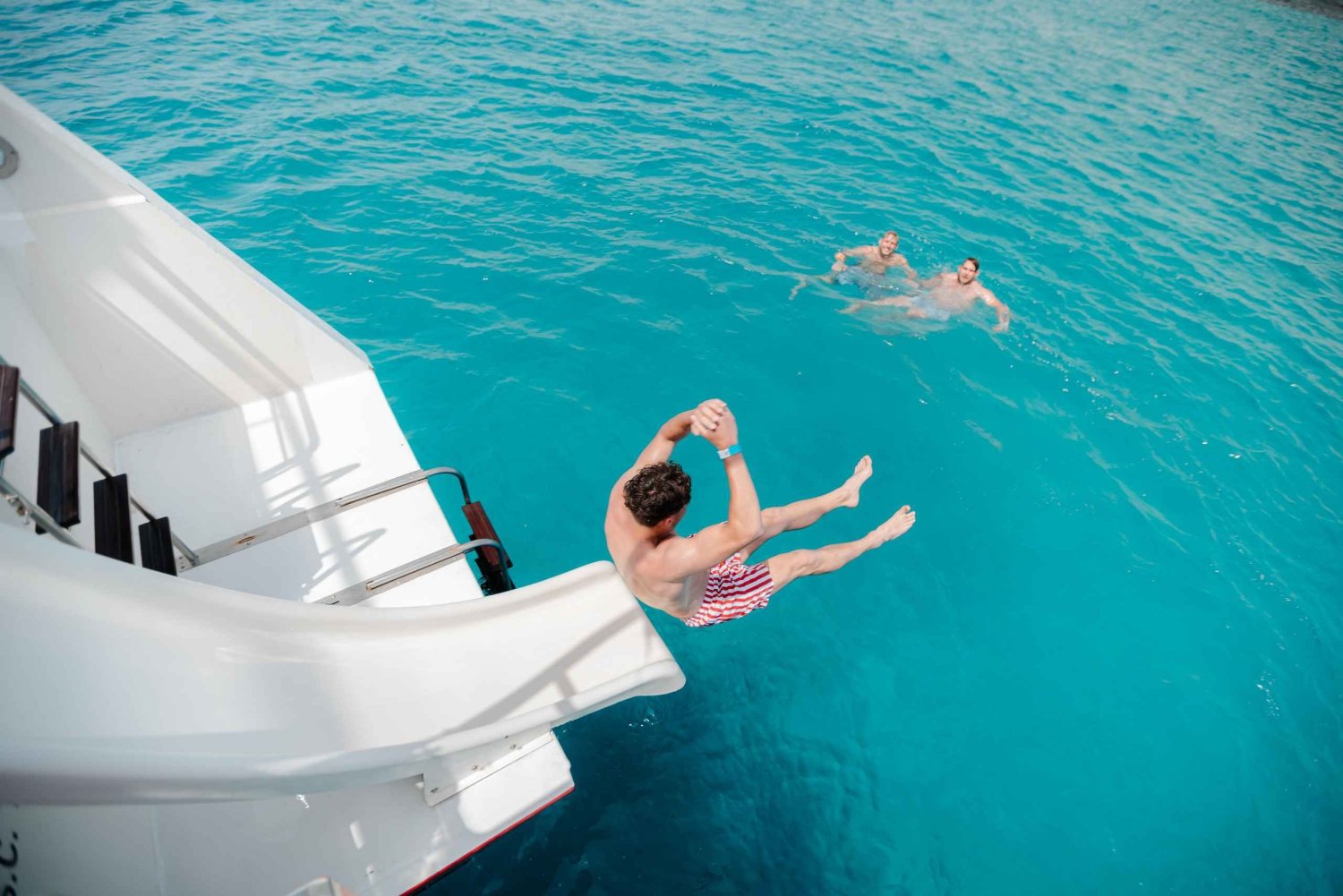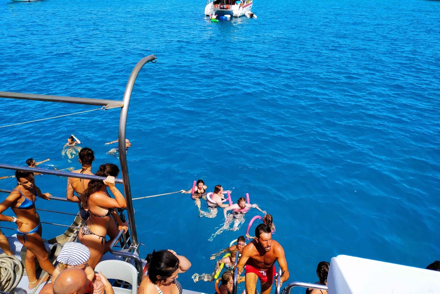 Descobre as majestosas falésias na costa oeste de Formentera neste cruzeiro a partir de Ibiza. Relaxa com bebidas como sangria, cerveja, refrigerantes e água do bar aberto bem abastecido. Desfruta de duas paragens para nadar ao longo do caminho. Suba a bordo de um barco espaçoso e confortável e sinta o vento em seus cabelos enquanto navega em direção a Formentera. Navega ao longo das falésias da costa oeste de Formentera até Cap de Barberia, passando por um majestoso penhasco com um farol. Depois de chegar a este ponto, retorna a Cala Saona e lança âncora. Mergulha nas águas cristalinas e aproveita para usar os nossos brinquedos náuticos. Desfruta de algum tempo livre para explorar por conta própria. Abra o apetite e sente-se para um buffet de dar água na boca ao sair da água. Depois do almoço, continua até à famosa Praia das Illetas e lança novamente a âncora para mais algum tempo a nadar por entre cardumes de peixes de cores vibrantes. Por fim, siga para a cidade portuária de La Savina por tempo livre. Dá um passeio pela pitoresca cidade portuária, vê o farol ou relaxa na praia. Embarca no barco para voltar ao seu local de busca em Ibiza. Importante: não paramos em nenhuma praia, as nossas duas paragens para nadar são na zona de Cala Saona e na zona de Illetas, mas no meio do mar (num local seguro, claro).Includes